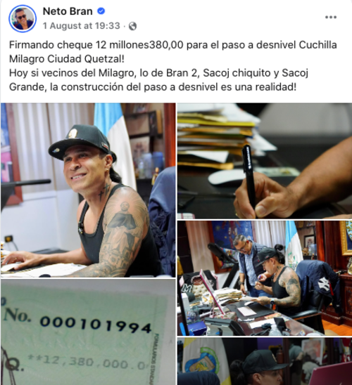 El proyecto tendrá un costo de Q61.9 millones y el contrato le fue adjudicado a la empresa Servicios de Ingeniería, Seringe. Para cubrir la inversión, Bran informó sobre un préstamo que fue otorgado a la comuna por un banco del sistema.