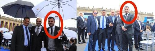 El piloto Samuel David Niño Cataño (círculos rojos) fue invitado especial en la posesión presidencial de Iván Duque, el 7 de agosto de 2018. Compartió tarima con el difunto narcotraficante José Guillermo Hernández Aponte, alias ‘El Ñeñe’, jefe político de la banda criminal de Marcos de Jesús Figueroa, alias "Marquitos".