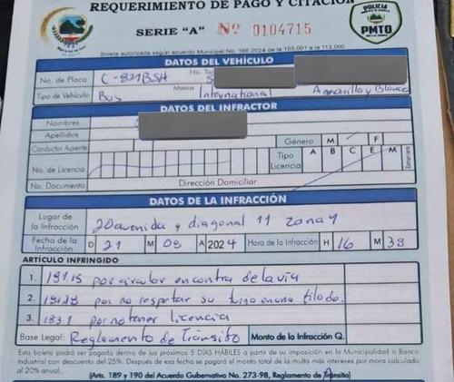 De acuerdo con la Policía Municipal de Tránsito de Quetzaltenango (PMTQ), el conductor fue sancionado por circular contra la vía y no respetar el turno en una fila en el tránsito.