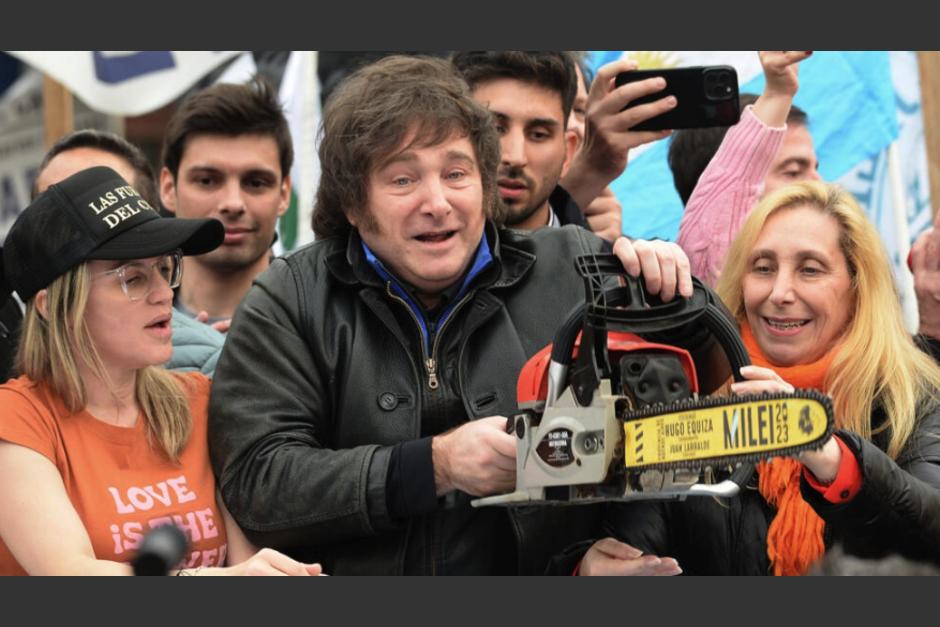 Milei ya apareció en sus mitines con guantes de boxeo y con una motosierra, con la que evoca los recortes que quiere hacer en servicios públicos, el tamaño del Estado y la "casta parasitaria" en general.
