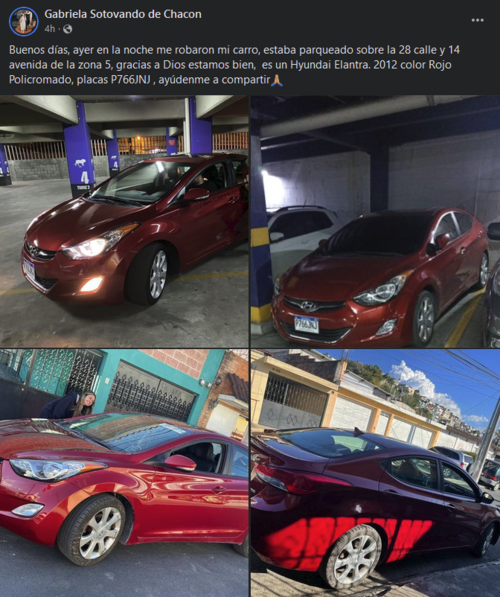 El suceso tuvo lugar en la 28 calle y 14 avenida de la zona 5, donde una mujer había dejado su vehículo estacionado. Al regresar al lugar, la dueña no localizó su carro, por lo que denunció en redes sociales el robo.