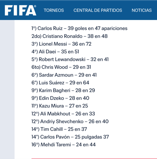 Sin embargo, el portugués podría sobrepasar esta cifra al contar con más juegos de cara al Mundial 2026. Por ahora, la cima es compartida por Cristiano Ronaldo y Carlos Ruiz.