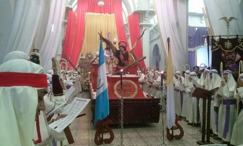 Antes de la condecoración en el templo de La Parroquia Santo Domingo de Mixco, se entonaron cantos por devotos católicos que esperaban cargar el anda para hacer su recorrido en las calles y avenidas del municipio.