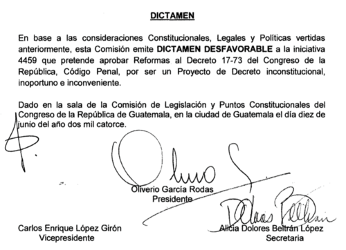 El abogado constitucionalista, Alejandro Balsells considera que esta propuesta es ilegal porque violaría los convenios internacionales en materia de derechos humanos suscritos por el Estado.