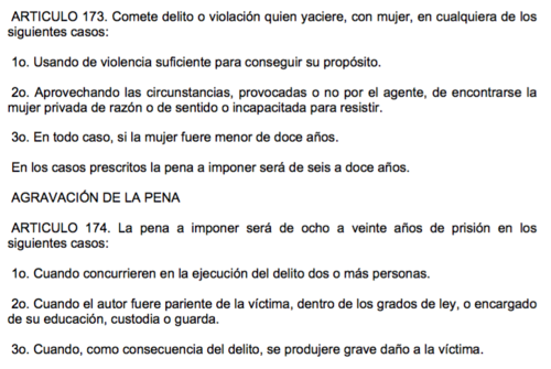 Actualmente la pena máxima para los violadores es de doce años, aunque si existe un agravante como que el abuso se haya perpetrado entre dos o más personas, el violador sea familiar de la víctima o su maestro, la condena puede ser hasta de 20 años.
