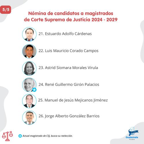 La nómina de 26 aspirantes a magistrados de la Corte Suprema de Justicia fue integrada por miembros de la comisión de postulación.