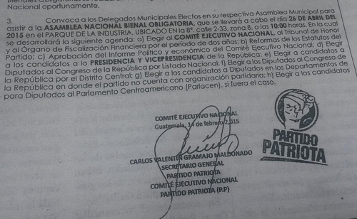El Partido Patriota (PP) celebrará hoy una Asamblea Nacional muy distinta a lo planeado. Salvo una sorpresa de último momento, no proclamarán a sus candidatos a la presidencia y vicepresidencia. Incluso, está en duda la elección de los candidatos a diputados por el listado nacional.