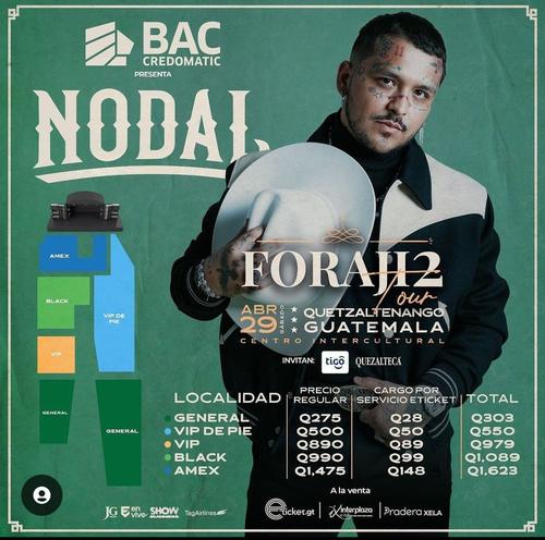 El famoso cantante mexicano Christian Nodal regresará a Guatemala para dar un concierto a sus seguidores guatemaltecos como parte de su gira "Foraji2 Tour".
