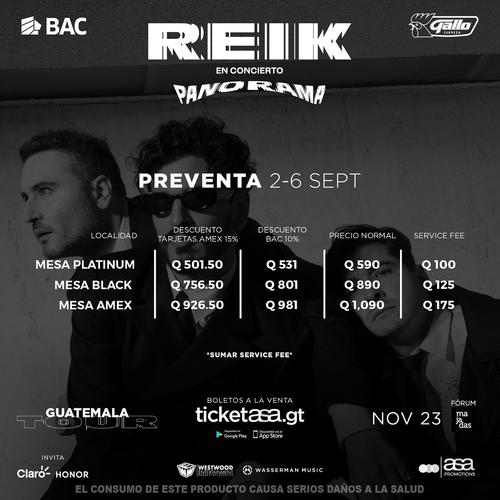 Asa Promotions, promotora encargada del concierto de Reik en Guatemala, ha dado a conocer que ya se pueden adquirir las entradas para el esperado show.