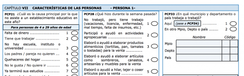Estas tres preguntas están enfocadas al empleo y la ocupación de las personas. Las últimas dos solo se harán si se contesta que no a la primera.