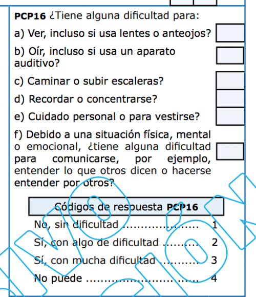 Esta pregunta forma parte de las que se harán para saber la situación física o la existencia de alguna discapacidad de las personas que viven en cada casa.