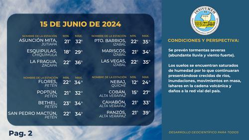 El informe del Insivumeh menciona que se prevé tormentas severas (abundante lluvia y viento fuerte).