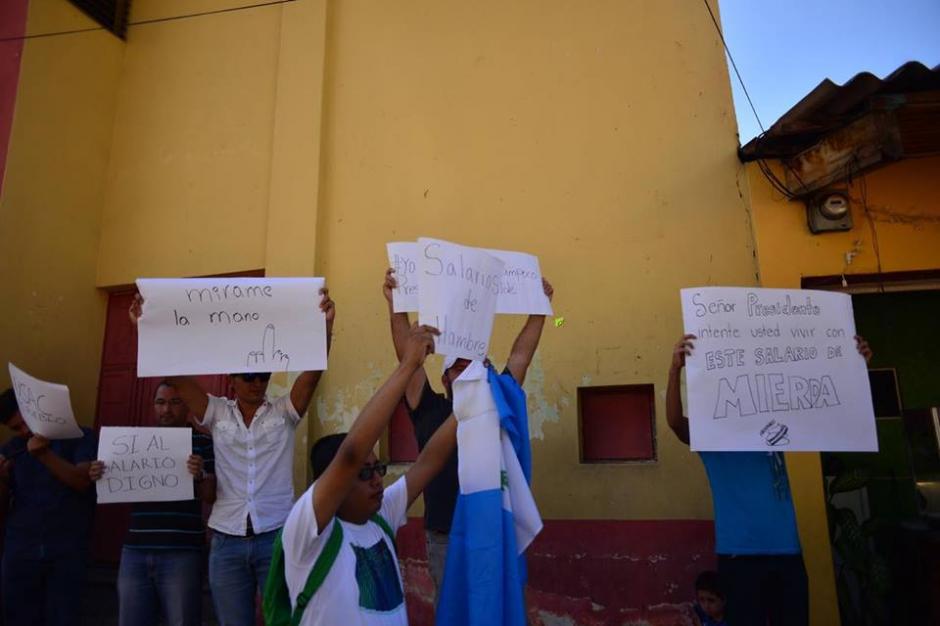Presidente Maldonado es recibido en Guastatoya con protestas contra el salario mínimo diferenciado. @soy_502 pic.twitter.com/2GTPw4FP12