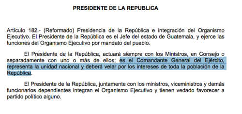 Además, Anabella Morfín, también constitucionalista, explica que al Mandatario le corresponde asumir como Comandante General del Ejército, para proteger la soberanía y el territorio guatemalteco junto con otros ministros, en este caso el de la Defensa Nacional.