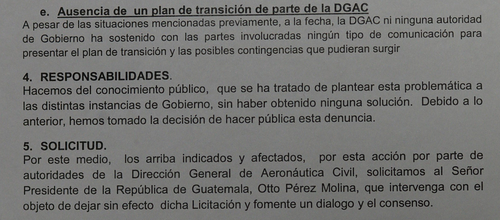 Este contrato ya fue rescindido y, según el presidente Pérez Molina, solo se está a la espera que la DGAC tome el control del lugar de nuevo.