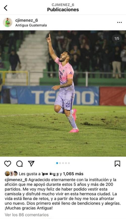 En su cuenta oficial de Instagram, el defensor guatemalteco de 28 años, Cristian "el Chaco" Jiménez, anunció que luego de 5 años en el equipo y más de 200 partidos disputados dejará la institución.