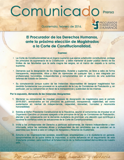 El Procurador de Derechos Humanos y varias organizaciones sociales le han pedido que el proceso sea transparente.