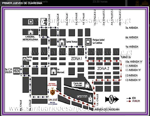 Esta procesión del primer jueves de cuaresma, marca el inicio de los cortejos que transitaran a lo largo de 40 días hasta llegar a la Semana Santa. En el mapa a continuación puede observar el recorrido en detalle.