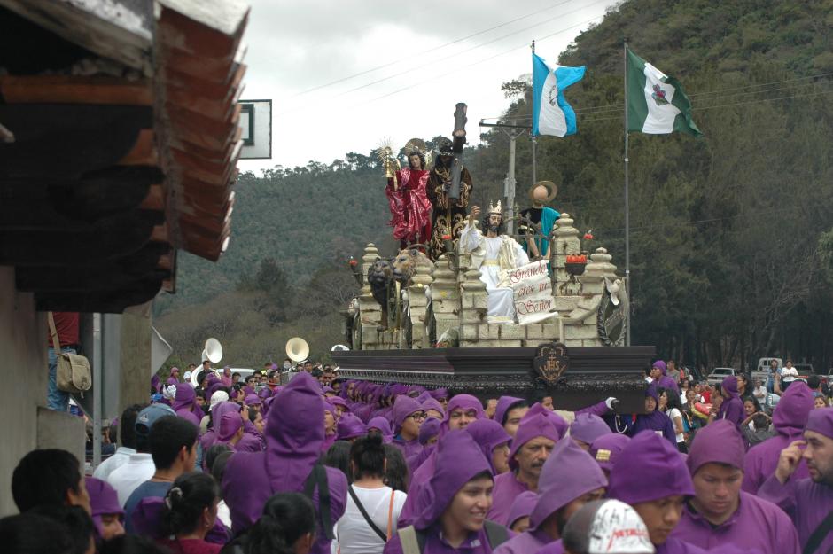 Las imágenes de Jesús Nazareno y de la Virgen de Dolores de la aldea de Santa Inés recorren este domingo las principales calles y avenidas de la Antigua Guatemala.
