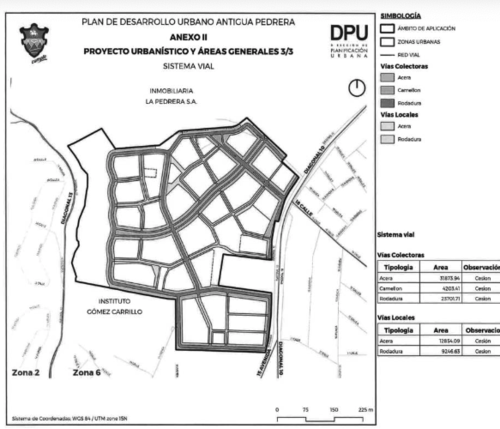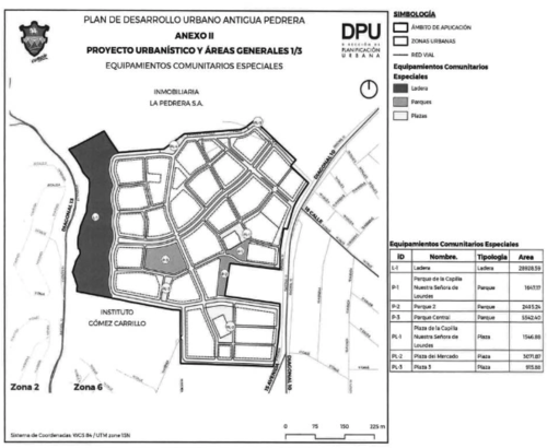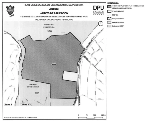 El Plan de Desarrollo Urbano Municipal, número 6008, para el conjunto urbano denominado "Antigua Pedrera", tiene por objeto regular, promover y orientar la planificación urbana integral de un suelo suburbanizado del Municipio de Guatemala, en los que se definen parámetros normativos, áreas de servicio público y otros elementos urbanos.