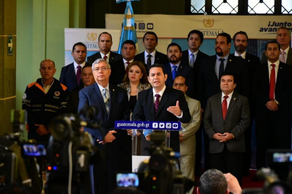 Morales ofreció una conferencia de prensa, acompañado de los integrantes de su Gabinete, en donde resaltó varios temas que considera como logros de su Gobierno, como el incremento de agentes de la Policía Nacional Civil, quienes, asegura, ahora tienen mejores autopatrullas.