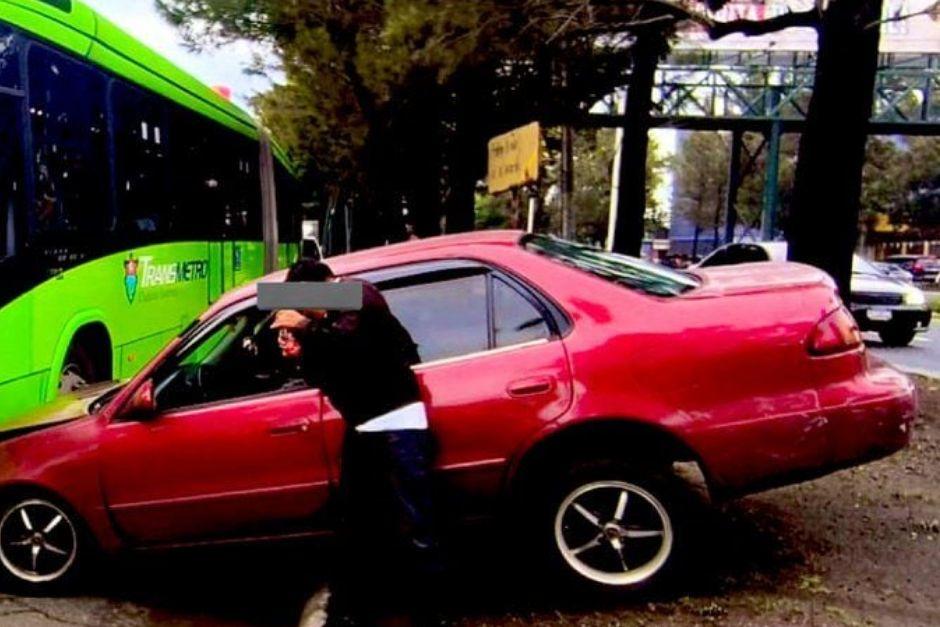 Perder la paciencia le salió caro al conductor de un vehículo, luego que de manera imprudente se cruzara sobre un arriate y terminara impactando contra un Transmetro.