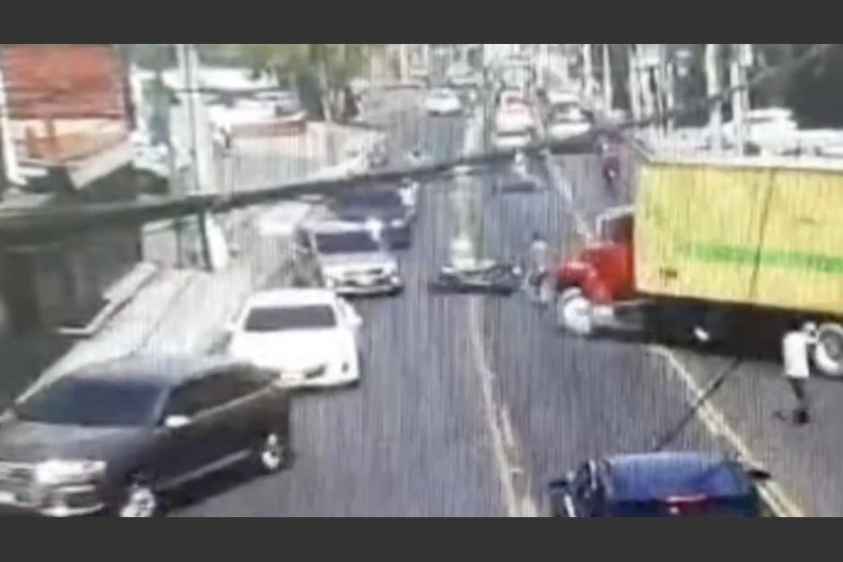 Las imágenes muestran que el motorista circula a un costado de un vehículo, pero este dice virar y se produce el accidente.