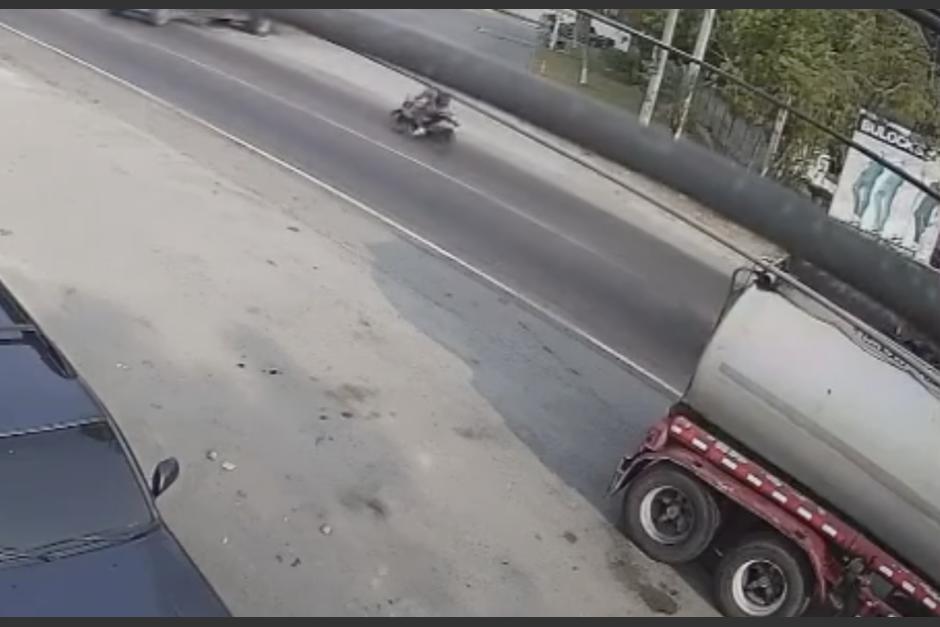 Una cámara de seguridad captó el momento en que se produjo un accidente de tránsito, en el que estuvo involucrada una motocicleta y un camión.