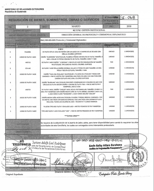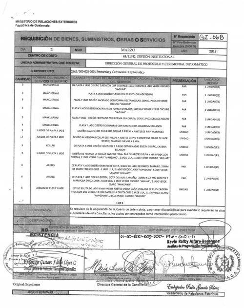 Según la vocera de la Cancillería, Martha Larra, los 86 juegos de joyas serán repartidos entre los diplomáticos guatemaltecos para que sirvan como obsequios para los intercambios durante las reuniones con sus homólogos de otros países.