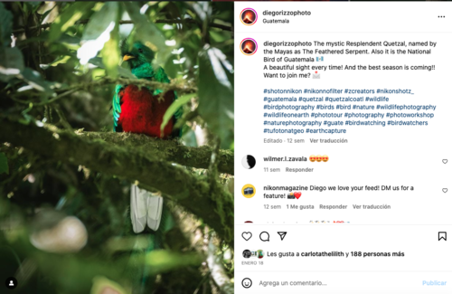 El especialista invitó a sus seguidores a ser parte de la aventura en busca de esta imponente ave: "Ven y únete en este recorrido donde visitaremos el bosque nuboso en las tierras altas de Guatemala para fotografiar esta increíble ave entre otras de la zona, como colibríes y el mielero de patas rojas".