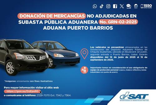 La Superintendencia de Administración Tributaria (SAT) a través de la Intendencia de Aduanas, anunció una donación de autos, en la aduana de Puerto Barrios.