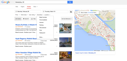 La búsqueda organiza los parámetros en función de las preferencias del usuario: precio, clasificación, puntuación, localización y servicios.