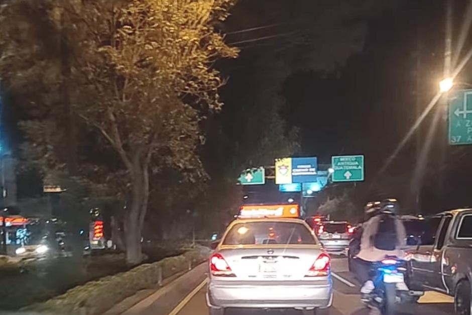 Montejo detalló que el congestionamiento se debe a que una persona murió, tras ser atacada a balazos a un costado del puente Tinco, en Mixco.