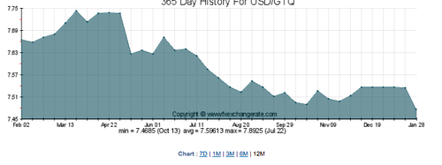 Mientras que algunos países vecinos, como El Salvador, que antes de la dolarización de su economía mantuvieron un tipo de cambio fijo frente al dólar, Guatemala rige el suyo con la oferta y demanda de divisas.