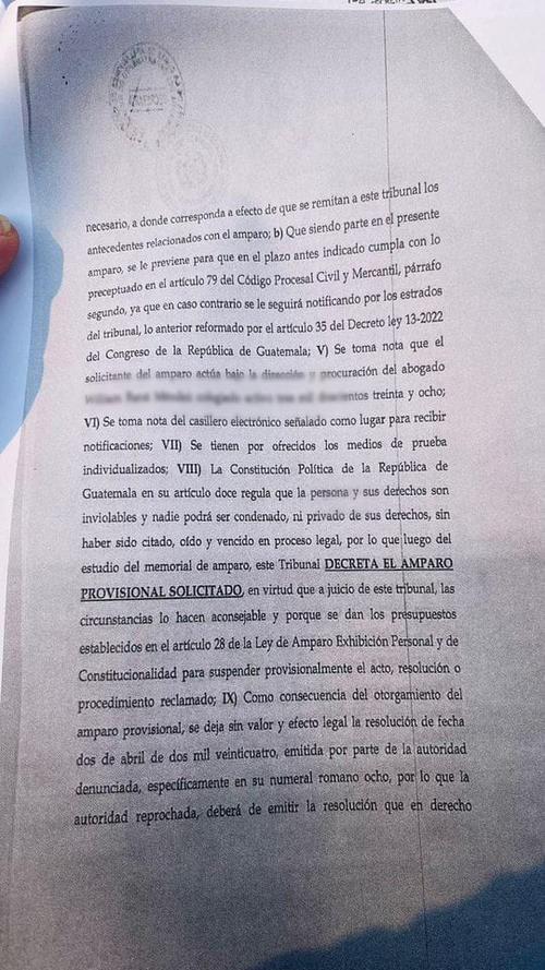 Sin embargo, un documento legal da cuenta que los afectados podrían haber obtenido un amparo provisional, para frenar la acciones que habían sido solicitadas ante un Juzgado del departamento de Zacapa.