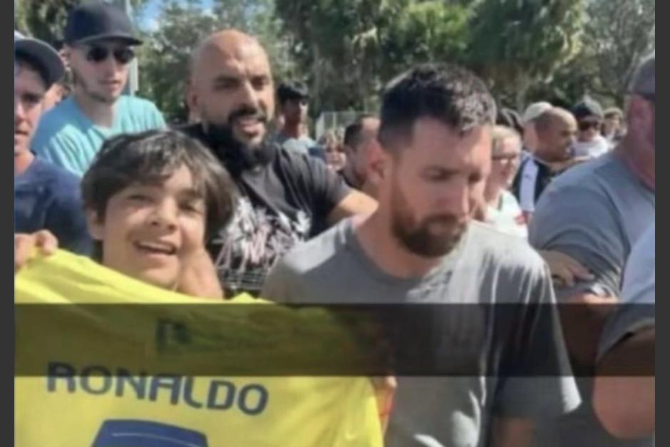 Sin embargo, uno de los presentes tenía otra idea. Un niño quería posar para una fotografía junto a Messi mientras mostraba una camisola con el nombre del eterno rival, el portugués Cristiano Ronaldo.