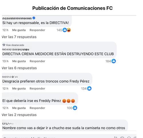 Algunos comentarios también cuestionaron la continuidad de otros jugadores en el plantel, mencionando específicamente a Fredy Pérez.