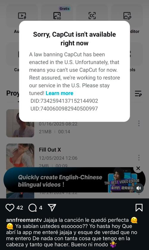 Incluso la ex presentadora de Café AM de TV Azteca Guate Anne Freeman quien se estableció en Estados Unidos para vivir con su familia destacó que la aplicación de edición de video CapCut también se encontraba con la misma restricción que Tik Tok.