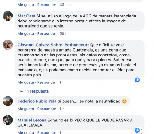 Los comentarios fueron diversos, algunos criticaban el mal uso del nombre de la Asociación de Gerentes, pero otros aprovecharon para manifestar su posición respecto a los candidatos.