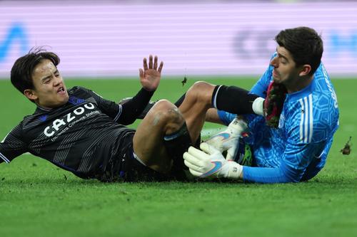 Los visitantes también lograron inquietar la portería blanca, pero Thibaut Courtois supo resolver el peligro en su valla.