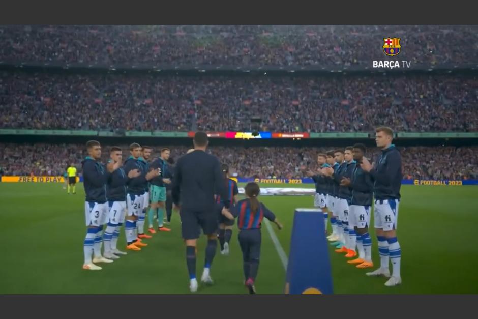 Los jugadores de la Real Sociedad realizaron el pasillo al campeón de LaLiga, el FC Barcelona.