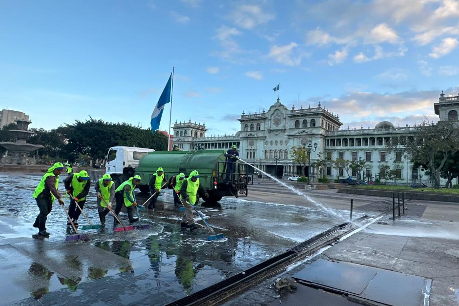 Desde primeras horas de este día, se observa la presencia de personal de ornato y limpieza de la Municipalidad de Guatemala, quienes trabajan en la recuperación del espacio público.