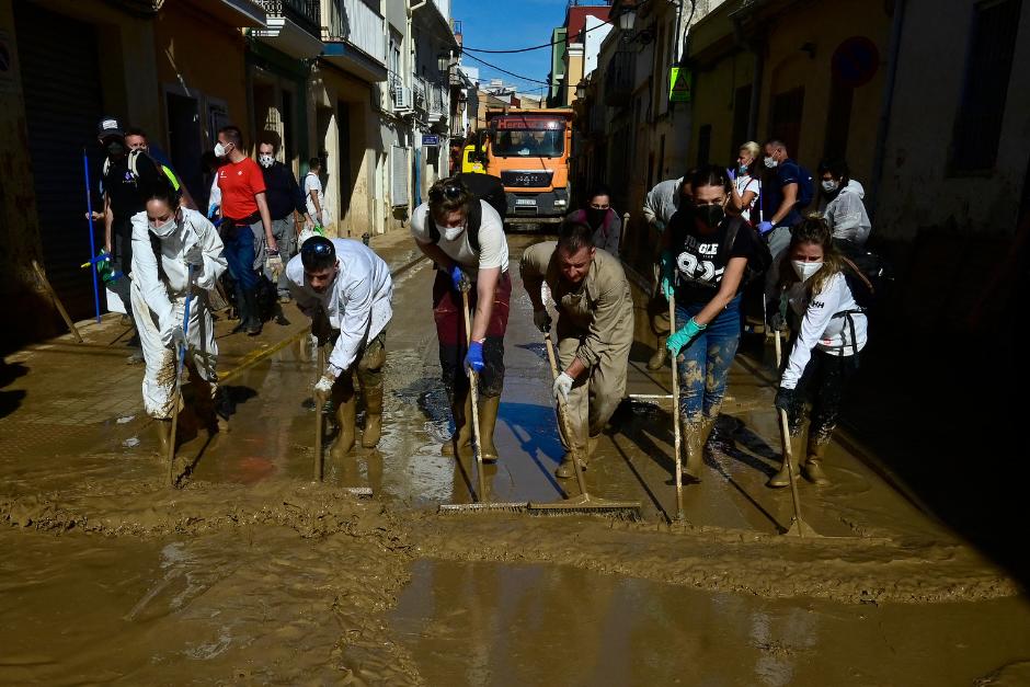 Durante el fin de semana, se intensificaron las labores de limpieza y desescombro con la llegada de miles de voluntarios de toda España, además de los equipos de emergencia que operan con maquinaria pesada, vehículos, helicópteros, embarcaciones y drones.