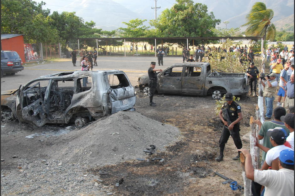 Después de 45 minutos, quedaron cinco camionetas y picops incinerados, agujereados por fusil y 11 muertos. Varios, quemados. El blanco del ataque era Juan José León Ardón, alias Juancho, conocido como tumbador de drogas. Sus guardaespaldas murieron con él, en cuenta tres exagentes de la Policía Nacional Civil de San Luis, Petén.