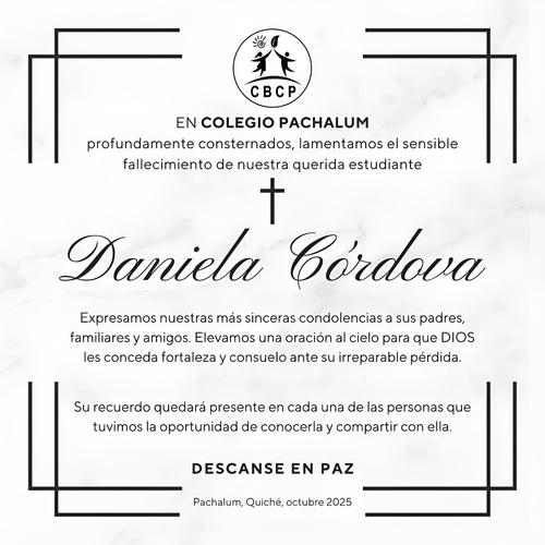 El colegio Pachulum, donde estudiaba, expresó su pesar a través de las redes sociales.