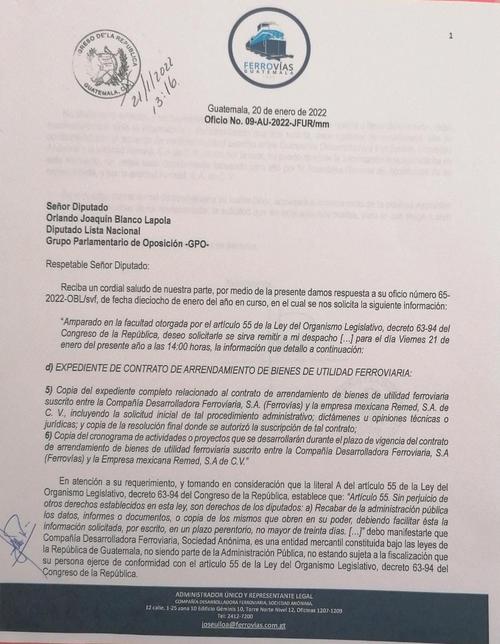 Soy502 no logró comunicación con Ferrovías Guatemala, que aparece como firmante en el convenio con Remed. De esa cuenta, se desconoce la fecha de inicio del proyecto ferroviario y los detalles del contrato.