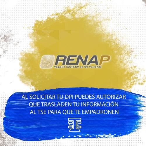 - A través del Renap: Al solicitar el DPI en alguna de las sedes del Renap, el solicitante puede autorizar a la entidad para que trasladen la información del ciudadano y el TSE lo empadrone de manera automática.