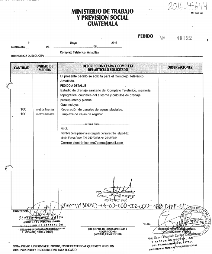 Otro de los gastos realizados ese año fue un servicio de limpieza y conserjería por Q72,500. Con esta inversión se repararon 100 metros lineales de los canales de aguas pluviales y se limpiaron cajas de registro.