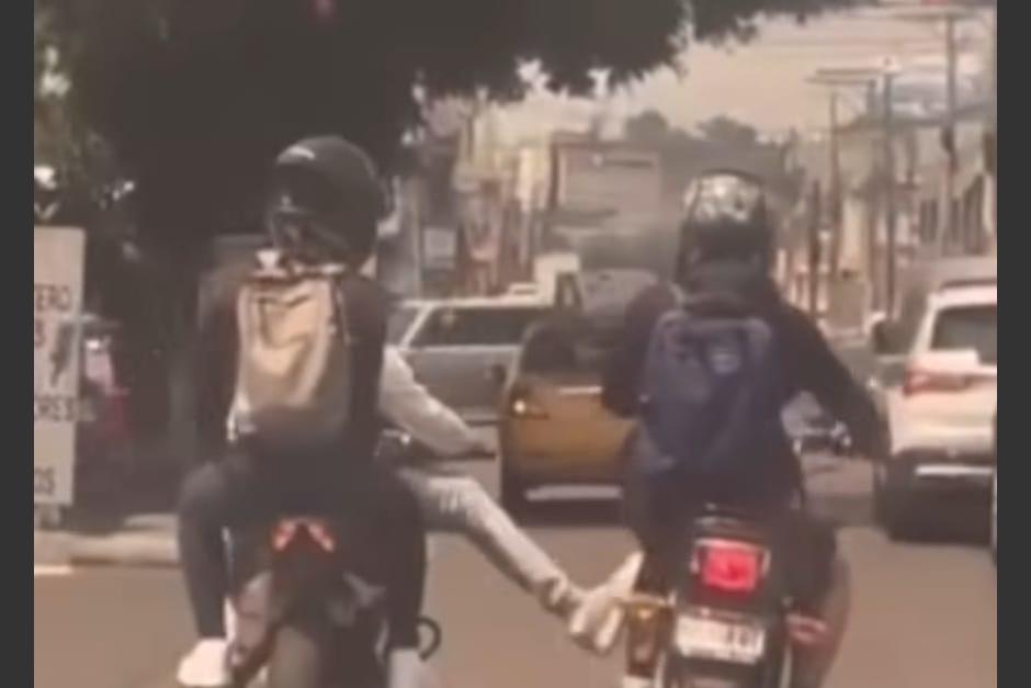 De acuerdo con la denuncia pública, ocurrió en dirección a Avenida Petapa. "La moto blanca se atravesó frente a la azul y hubo agresión verbal, luego lo alcanzó e hizo este acto", detalló el usuario.