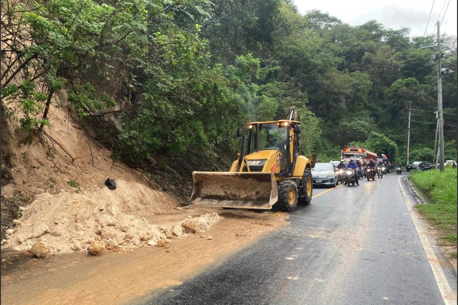 Una de las razones principales del tráfico es un derrumbe que obstruye el carril derecho en el kilómetro 19 de la ruta a la Ciudad de Guatemala.